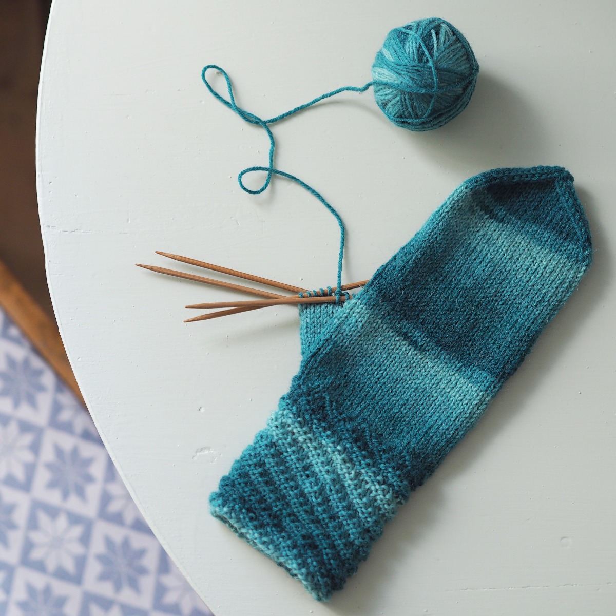 Material: 100 g mellanraggi (Färg 28553) och strumpstickor 3 mm