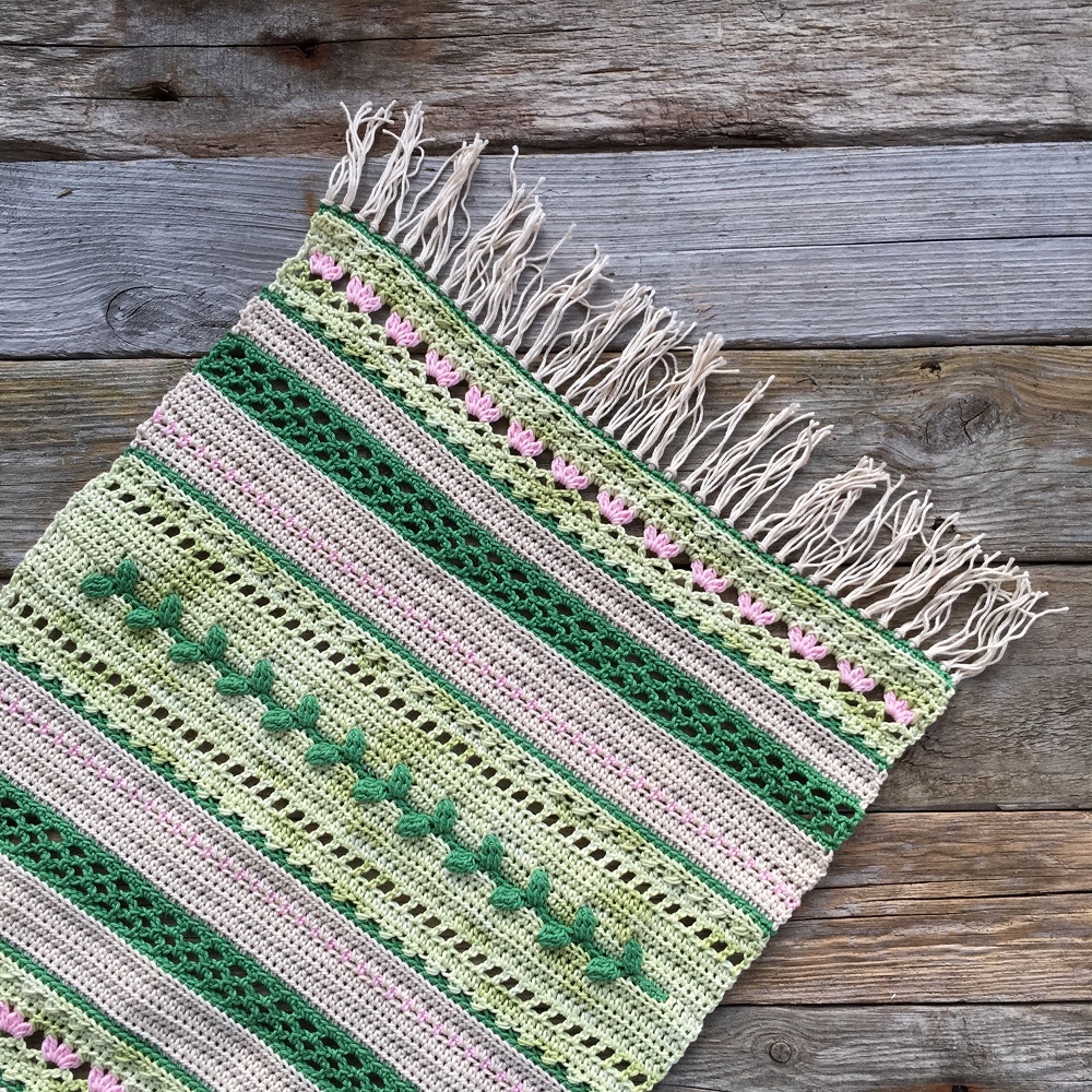 Idag är det dags för den sista delen av Vårkänslor CAL. Tack så mycket för att ni ville hänga med genom den här mysterievirkningen. Jag hoppas att ni haft roligt och att vårsol och vårkänslor nu hittat fram till alla. Jag ser också fram emot att få se alla färdiga vårdukar!