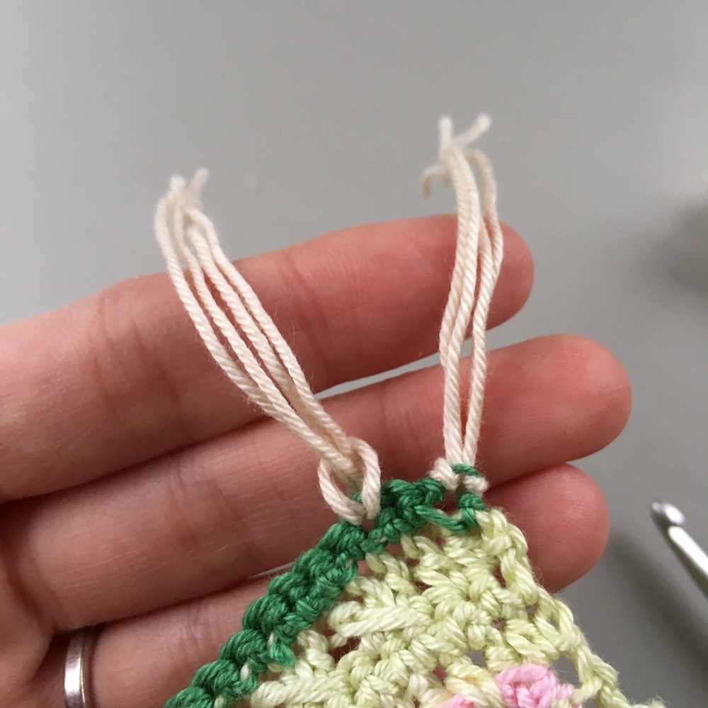 - Dra åt knuten så att fransarna sitter ordentligt.