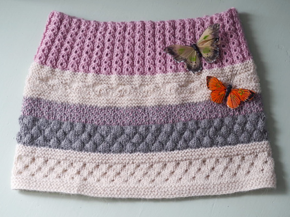 Varv 8 (Hålvarv): *2 rm tills, 1 omsl, 2 rm* upprepa från *-* varvet runt.