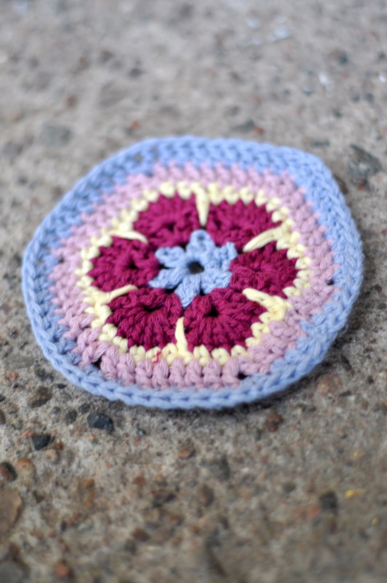 Material: Rester av Soft Cotton i 5 olika färger, virknål 3,5-4 mm.