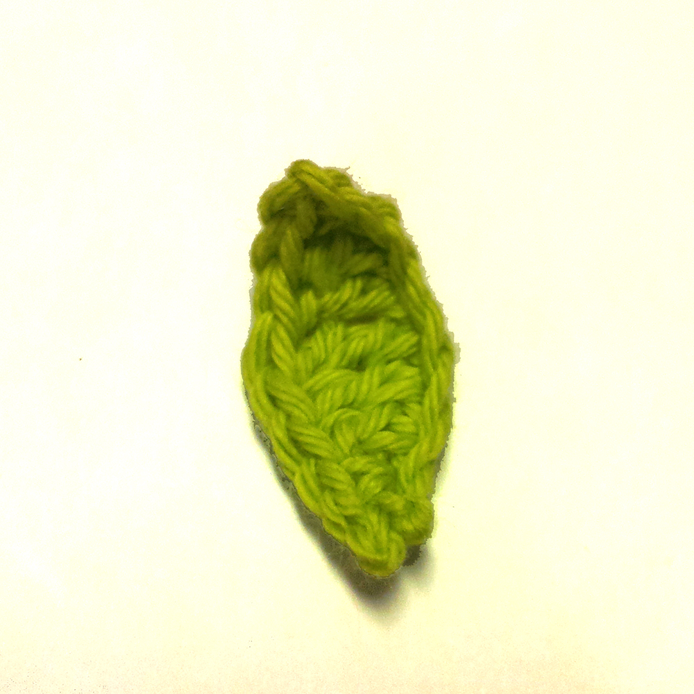 Varv 2: Börja i 2:a lm från nålen och virka 1 hst, sedan 1 st i varje lm 7 ggr, 1 hst i nästa lm. I sista lm virkas 3 fm och sedan vrider du arbetet (horisontellt) och fortsätter virka på andra sidan lm-raden, 1 hst i nästa lm, 1 st i varje lm 7 ggr, 1 hst i nästa lm, 1 fm i nästa lm, 1 sm i sista lm.