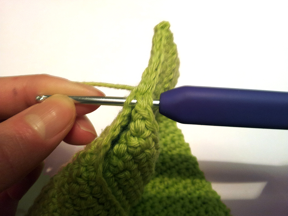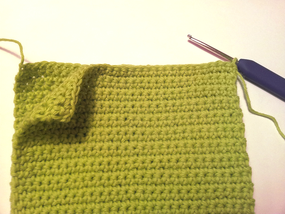 …och virka ihop kortsidorna med 1 sm genom varje m.