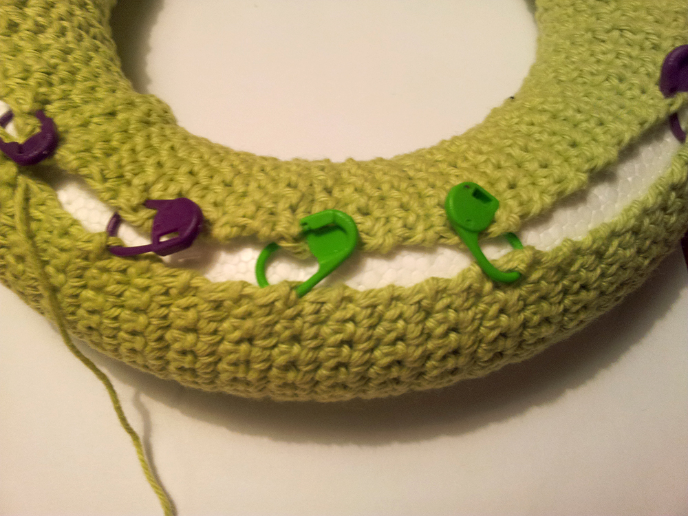 Placera det virkade ”fodralet” runtom styrolitringen,