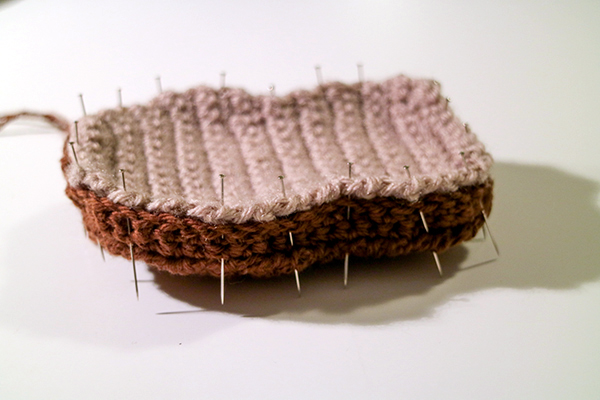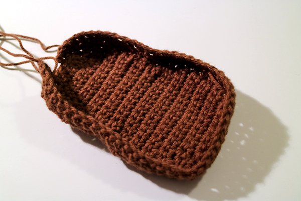 Varv 9-12: Vänd och gör en lm. Virka 1 fm i varje fm.