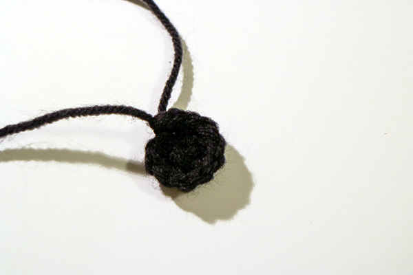 Varv 2: Virka en fm i den andra lm från nålen. Virka 1 fm i följande 5 lm = 6 fm