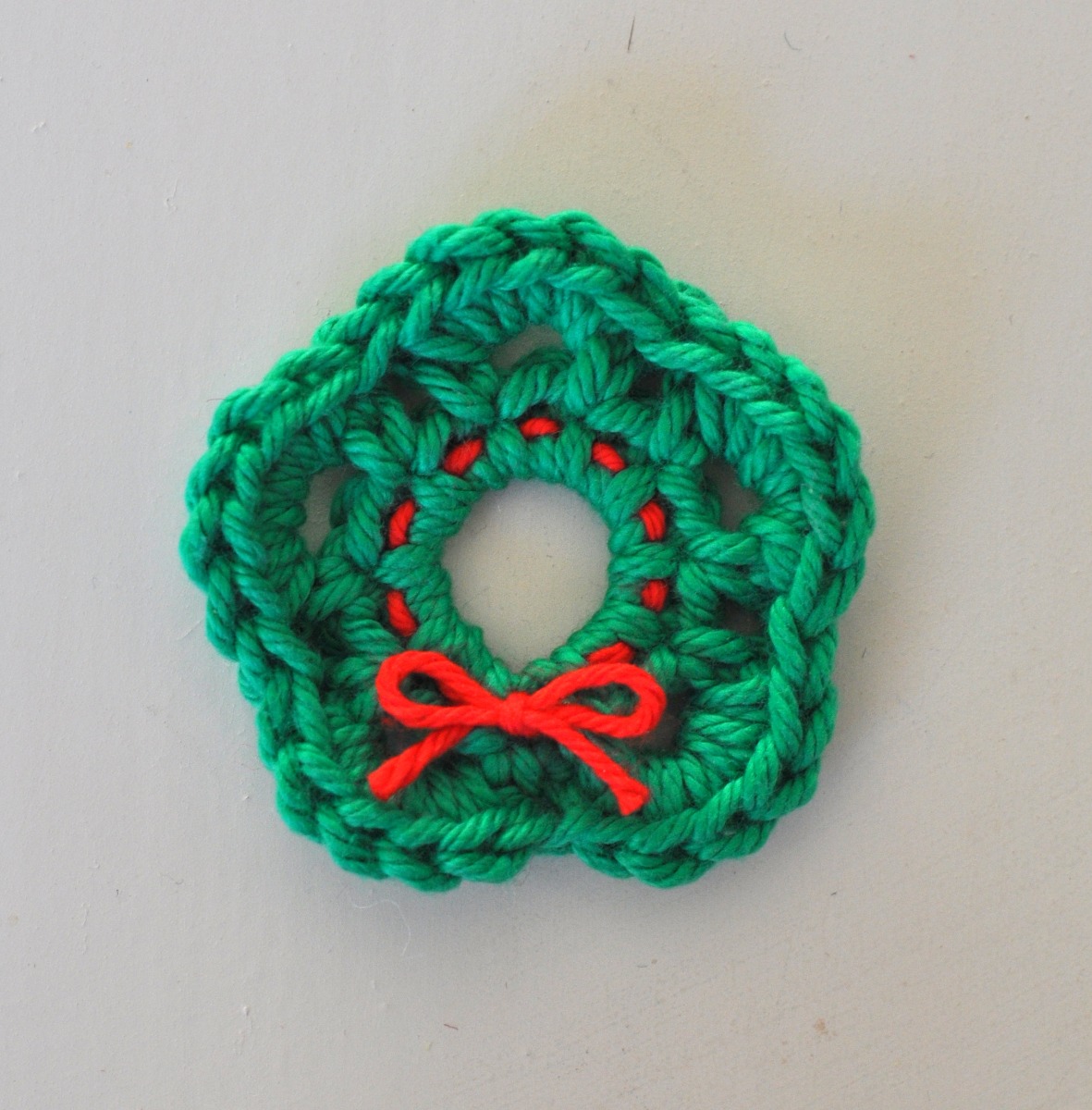För vad sägs om att virka en liten, liten julkrans och hänga den på en liten, liten ”dörr”? Vore inte det sött?