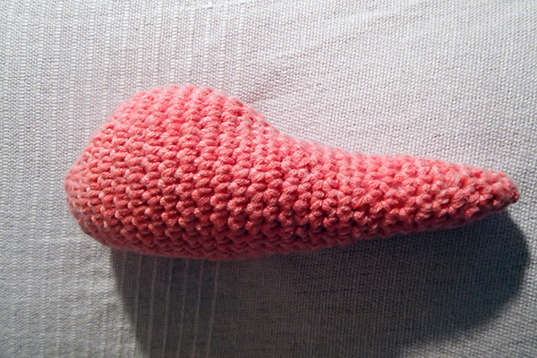 Varv 15: Virka 1 fm i de första tre fm. Virka (2 fm tills) 6 ggr, sedan 1 fm i var och en av de följande fm varvet ut = 30 fm