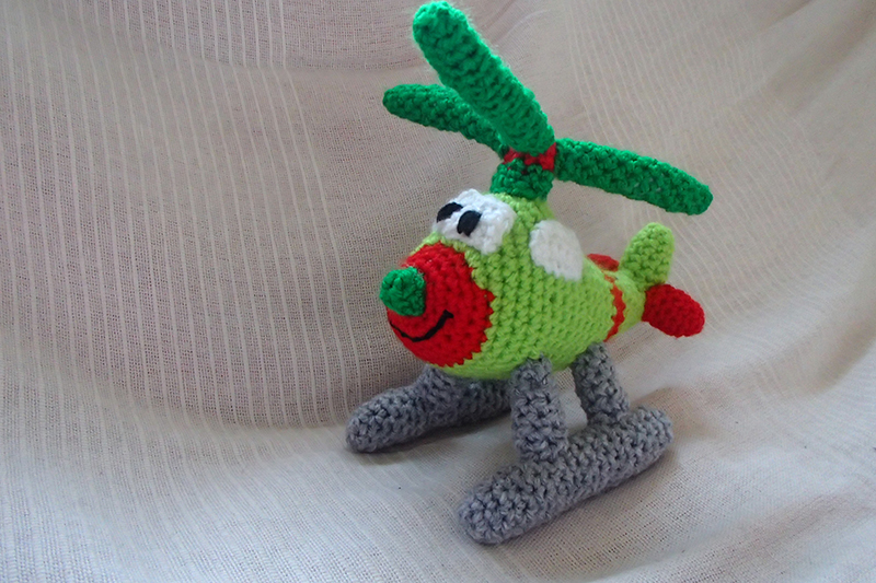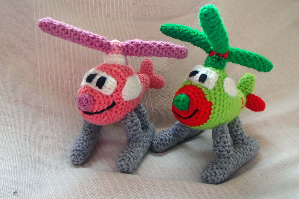 Idag bjuder vi på ännu ett härligt mönster från Vendela Wikström – helikoptrarna Loopy och Snurris!