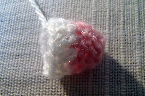 Varv 19: Virka (2 fm, 2 fm tills) 6 ggr = 18 fm