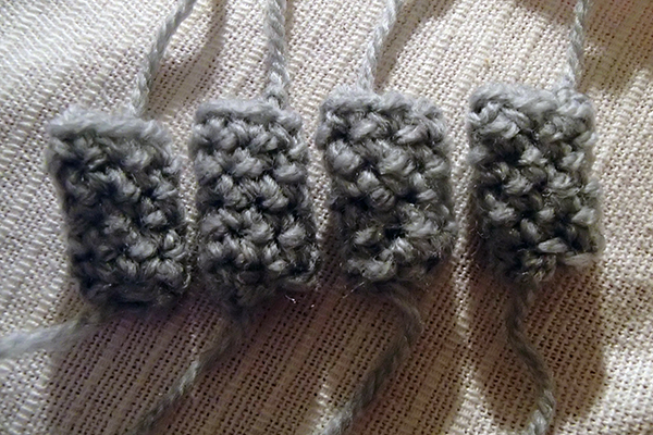 Varv 2-4: Virka 1 lm, vänd, virka 1 fm i de följande 7 fm