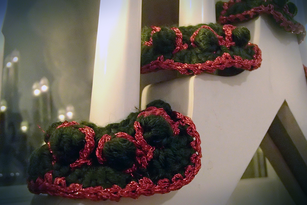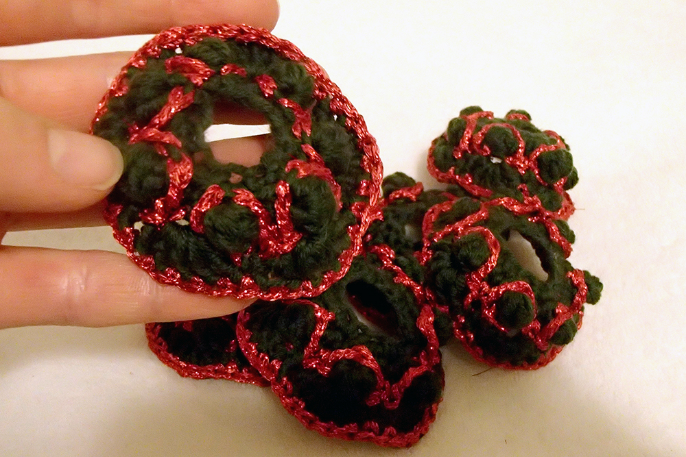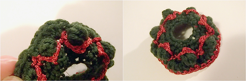 Garn: Mira 46119 (mörkgrön), Glittra 18105 (röd)
