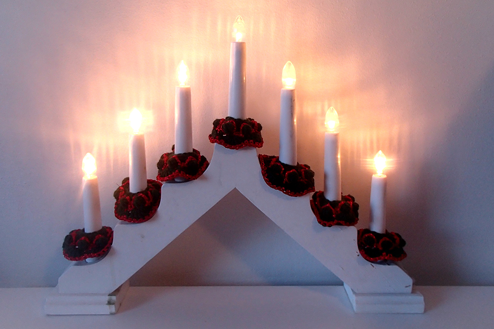 Idag bjuder Vendela Wikström på söta ljusmanschetter att virka och sätta på adventsljusstaken!