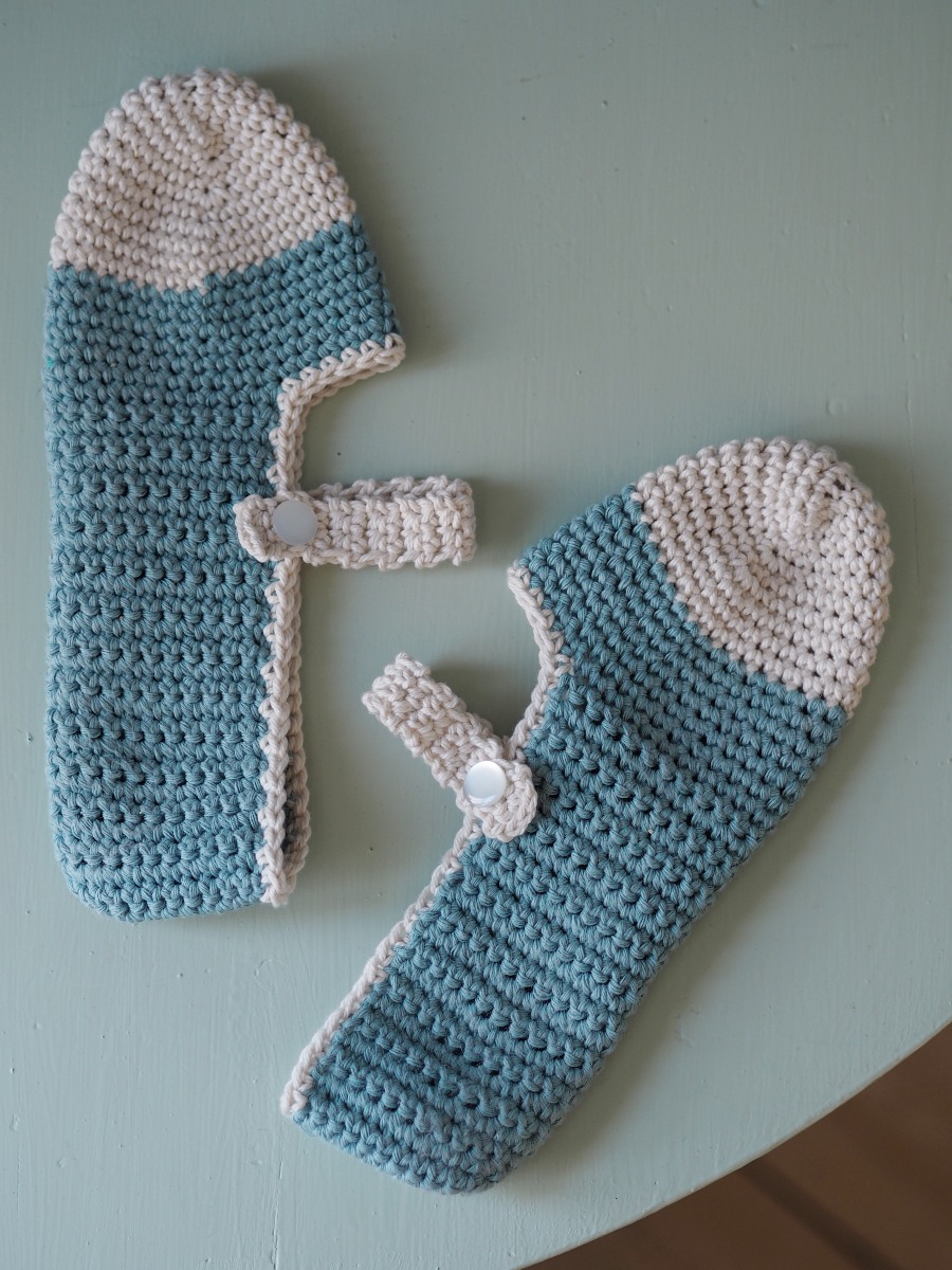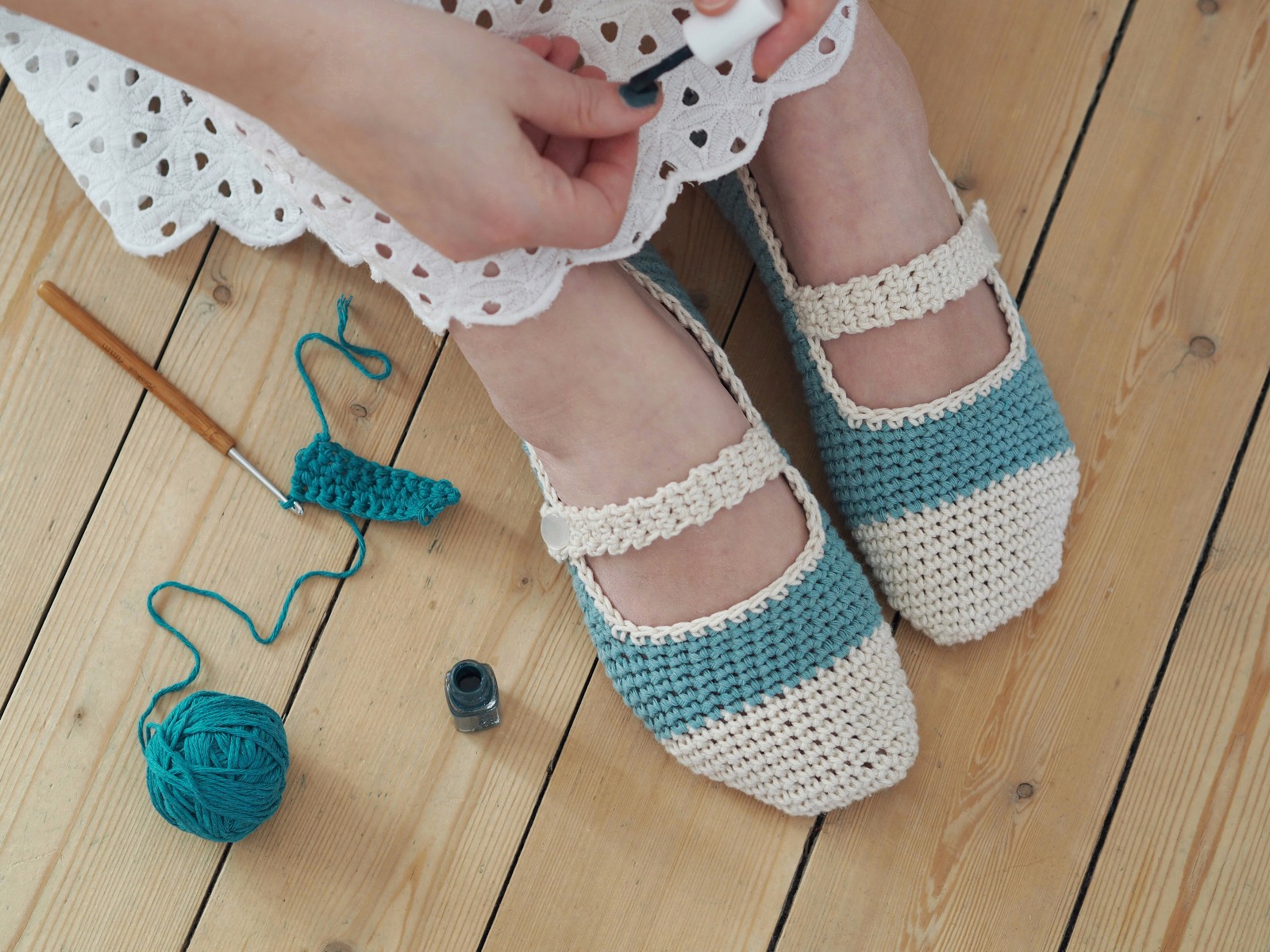 Du virkar enkelt de stilrena tofflorna av garnet ”Reko” – en spännande nyhet som består av återvunnen bomull!
