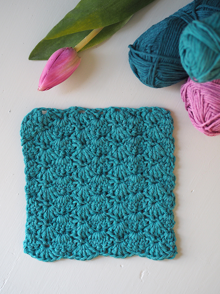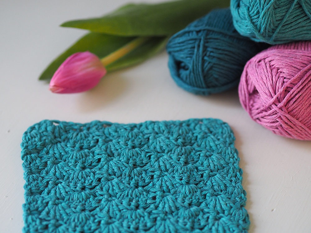 Det finns många olika slags snäckskalsmönster. Den här varianten är tät och ger en livfull struktur. Perfekt att använda som bas om du exempelvis vill virka ett kuddfodral, en babyfilt eller en halsduk!