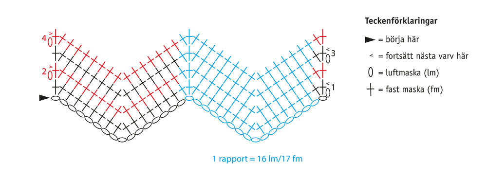 Gör en luftmaskekedja som är delbar med 16 + 2 maskor.