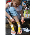 Blockning och tvättning: Garn kan färga av sig när det ligger fuktigt en längre stund. Var extra varsam vid blockning och tvättning av plagg med starka kontrastfärger. Fukta arbetet, gärna med en sprayflaska, krama försiktigt ur eventuellt överskottsvatten i en hoprullad handduk. Lägg arbetet att plantorka och spänn ut det efter angivna mått.