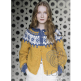 Vårsol – Rundstickad kofta med isländskt mönster. Bål och ärmar rundstickas nedifrån upp till ärmhålen, delarna sätts samman på en rundsticka och ett ok stickas över alla maskor. Designer: Ístex/Lopi